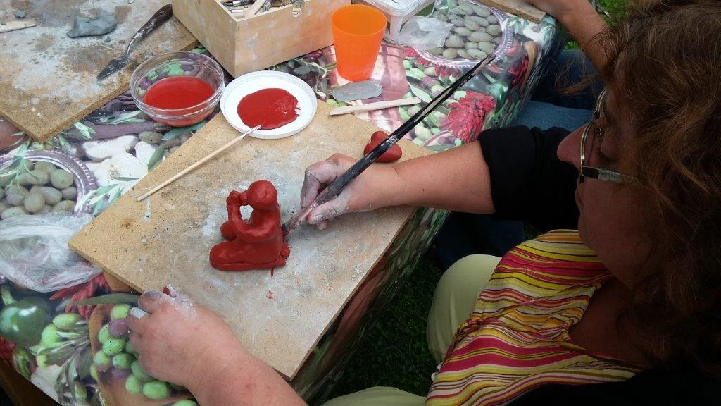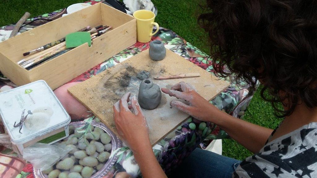 Deze workshop bestaat uit twee delen. Aan het begin van de week gaan we boetseren en beschilderen. En aan het eind van de week de werkstukken bakken in een buitenoven.